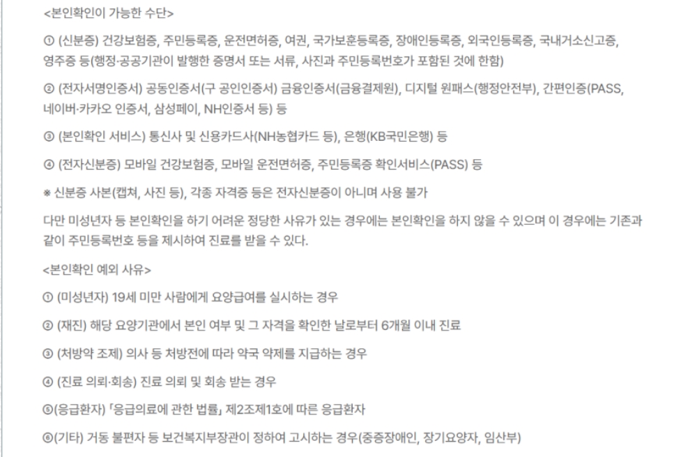 건강보험증 불법사용에 대한 안내 문구 확인 클릭 > 개인 선택 > 확인 버튼 클릭 >개인정보 수집 동의 후 본인확인 하기 클릭 > 본인확인 인증화면에서 PASS 앱이나 휴대폰 메세지로 본인인증 받기 > 본인확인 완료 후 확인 버튼 클릭